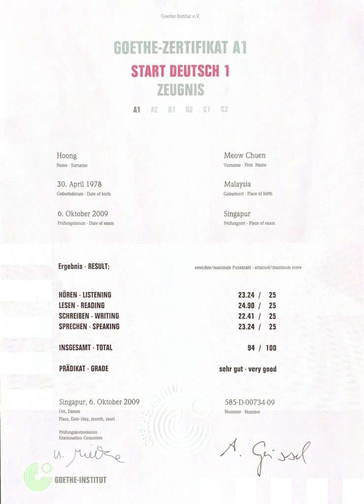 Goethe Institute Certificate A1